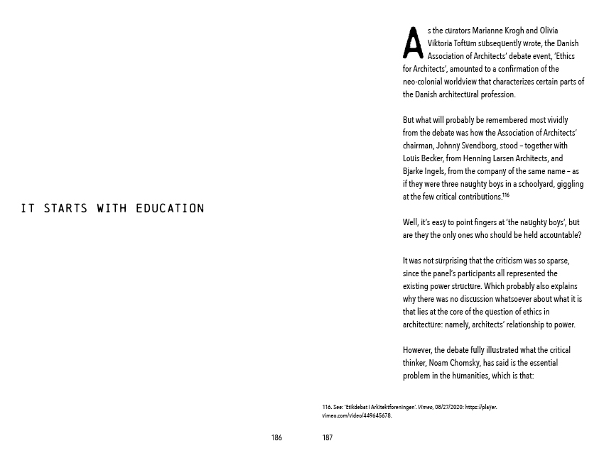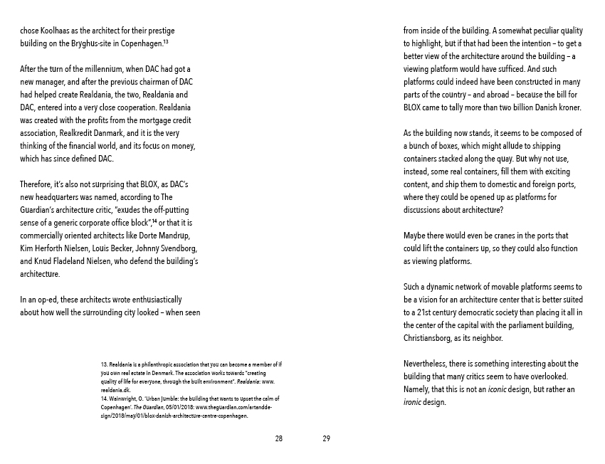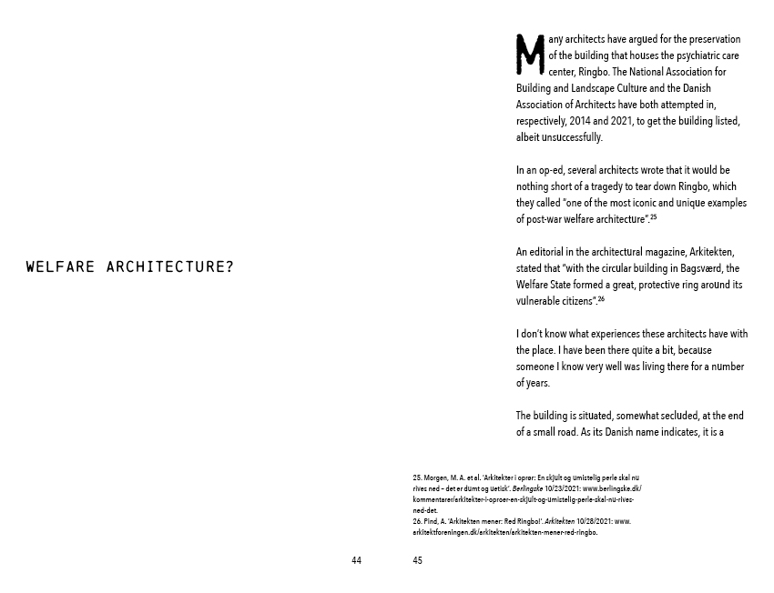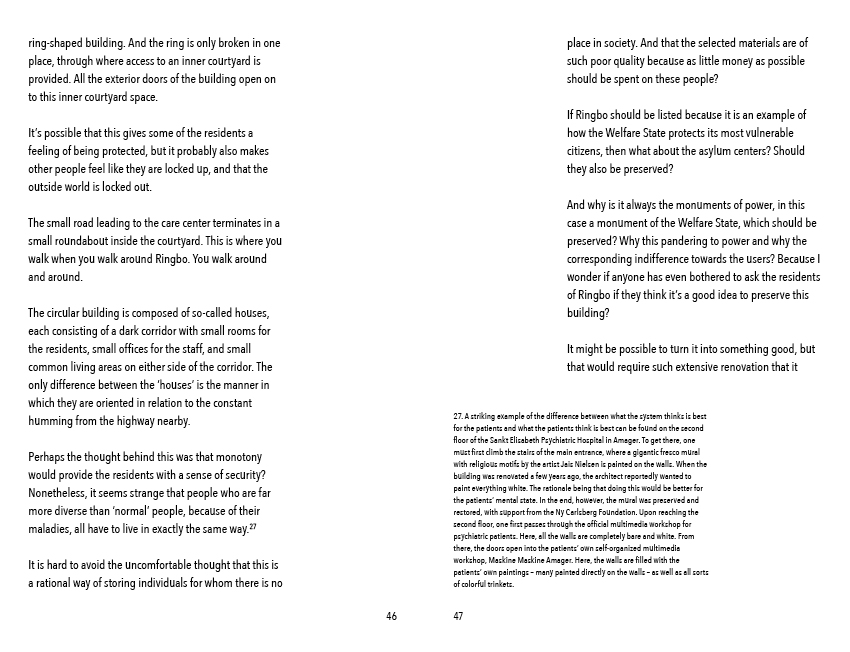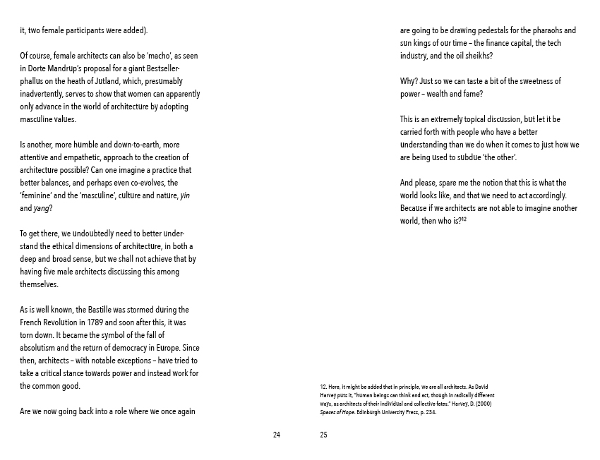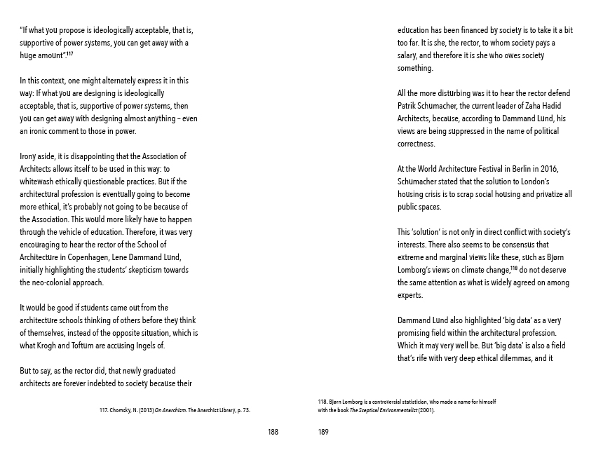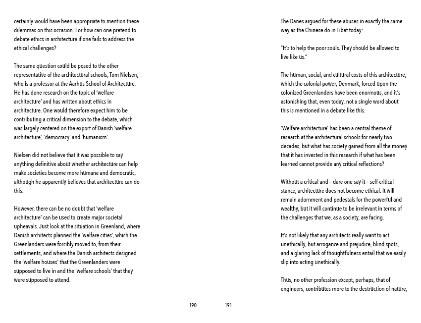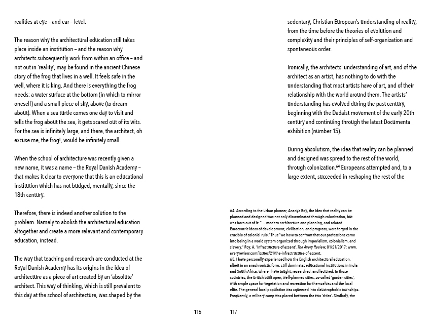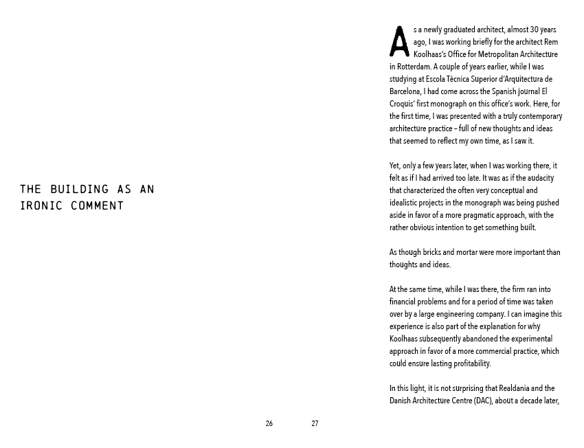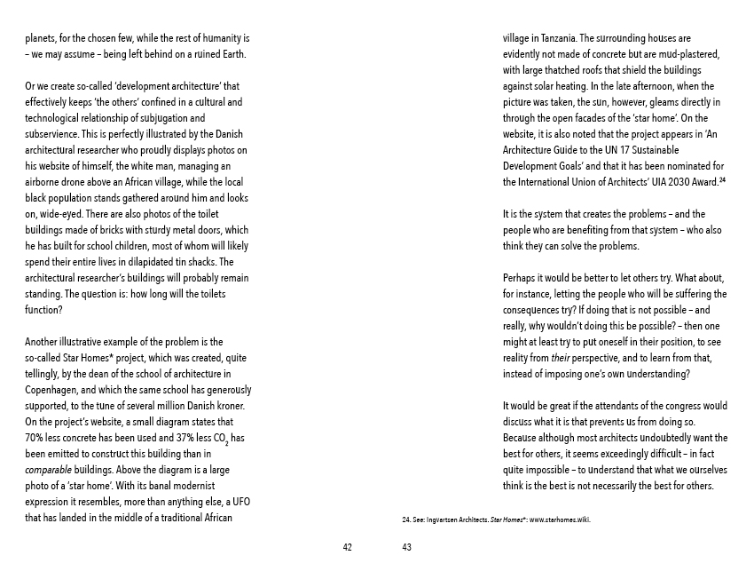 The book is a combined, edited, and slightly rewritten English-language version of two small Danish debate books: En anden by (2021) and En anden by 2 (2023). It is published on the occasion of the UIA World Congress of Architects in Copenhagen in 2023 and the city being named the World Capital of Architecture the same year. The first book followed from a course on ‘An-other City’ (En anden by) at the People’s University – an initiative for critical, creative reflection and action among activists and anarchists, dissidents and dreamers. The intention of the course was to strengthen the resistance against the developer-driven and technocratically managed urban development, and to develop alternatives to it, by exploring possibilities for a more spontaneous and self-organized form of urban development, based on the theory of ‘development urbanism’.
