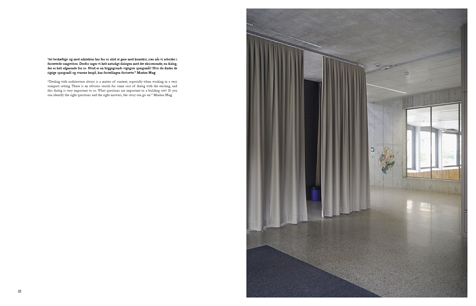 The idea of the book is thus to give an architecture school a voice; to reflect on an approach to the architectural task, a working method anchored in place and history, but with a clear starting point in a contemporary and artistic standpoint.