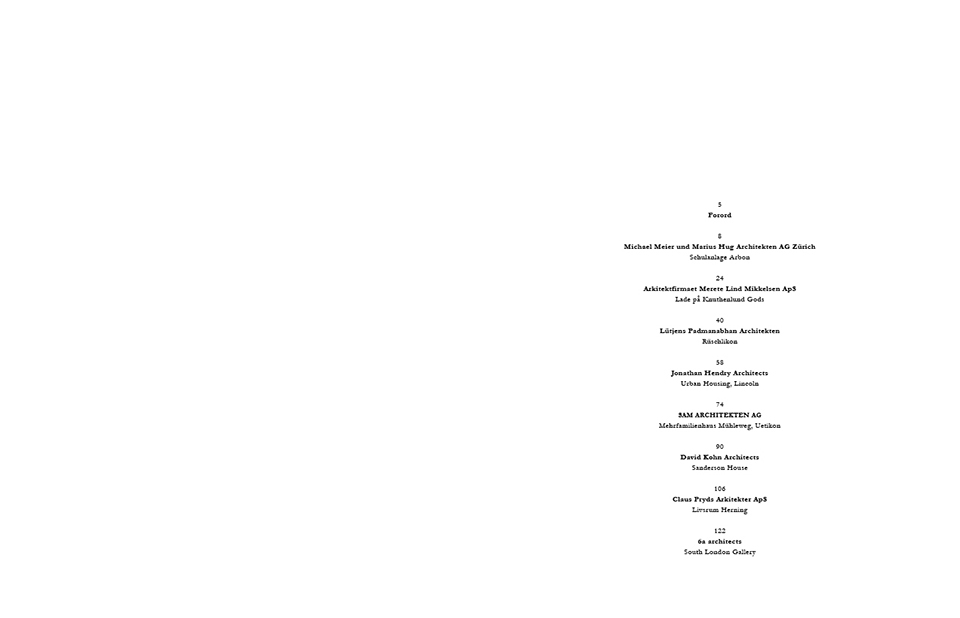 The works are presented with the wish to take a look at an inspiring architecture movement that is seen in all three countries, particularly in England and Switzerland. Architects and teachers support a direction in which architecture is based on context and analysis and in extracting values of cultural, artistic and architectural material.