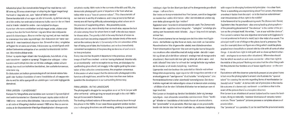 Finn Larsen roams the landscape, doing so naturally - however dismissive of romantic reminiscences. This "pastoral" pictures possess a complete absence of provincialism." (Martin Sne, Introduction)