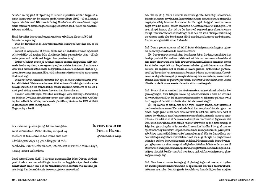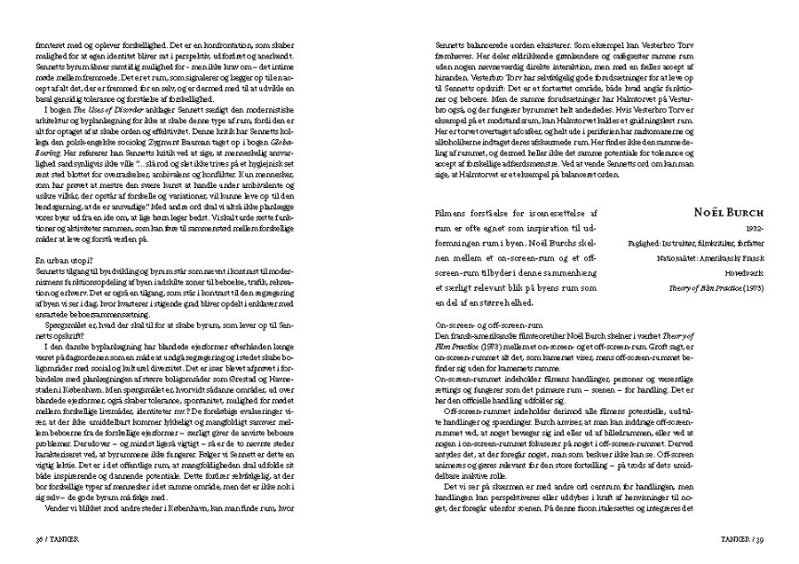 I Tanker genlæses blandt andet værker af Jane Jacobs, Kevin Lynch, Gilles Deleuze & Felix Guatarri, Pierre Bourdieu, Richard Sennett, Umberto Eco og Zygmunt Bauman. Deres tanker samles i en tværfaglig, byteoretisk tankefusion.