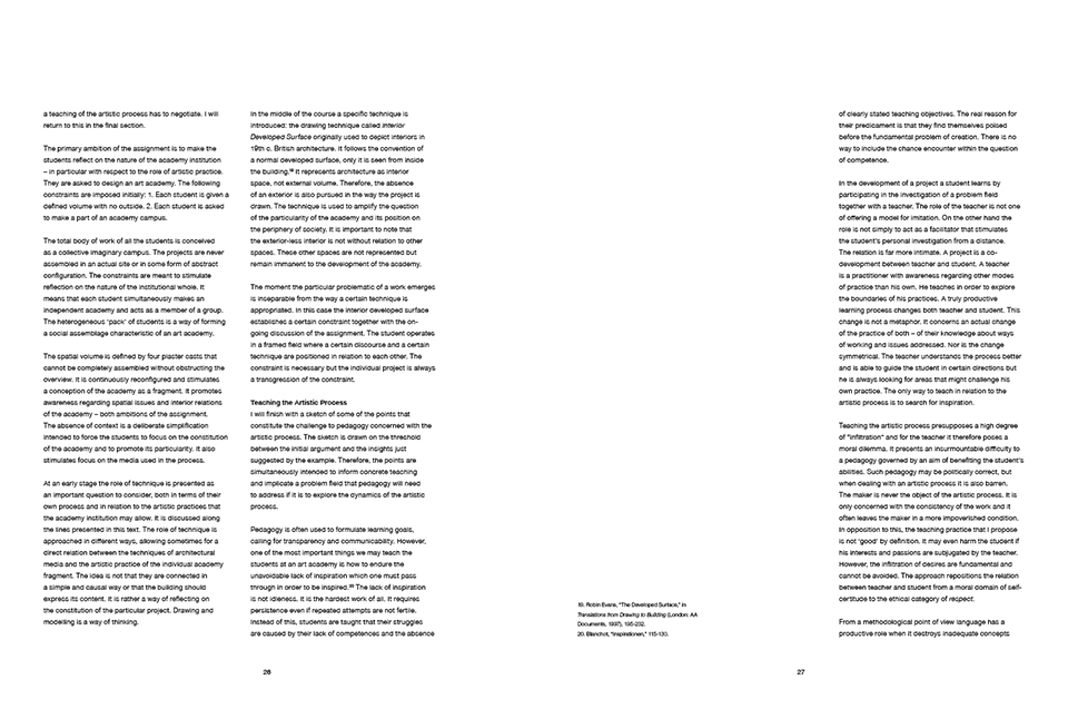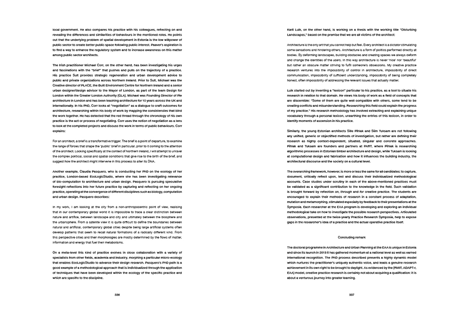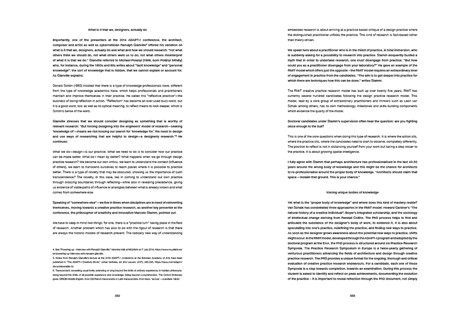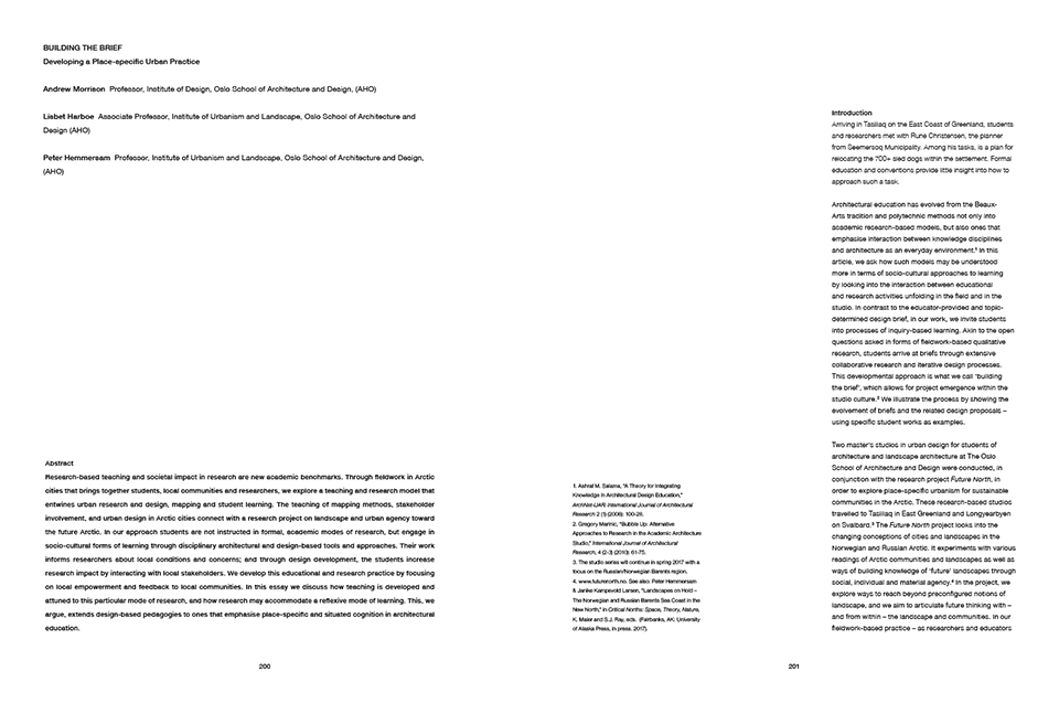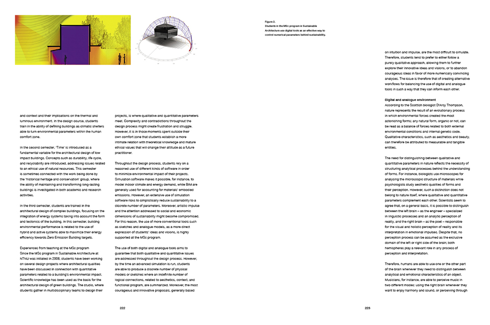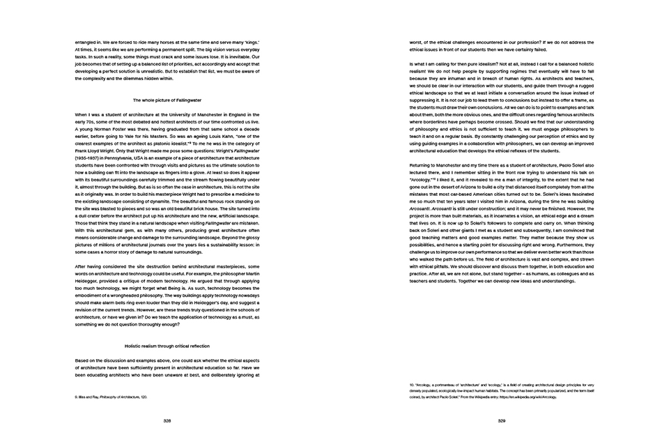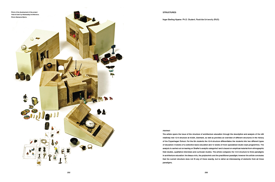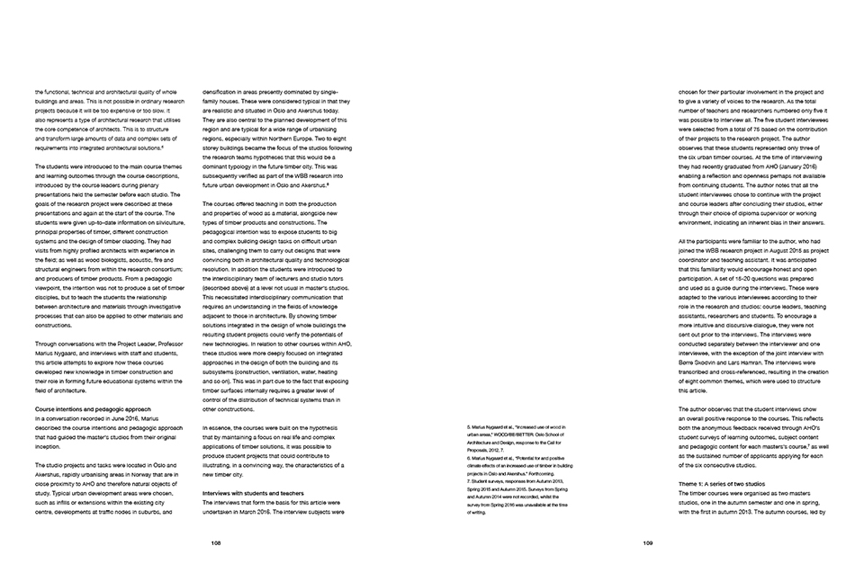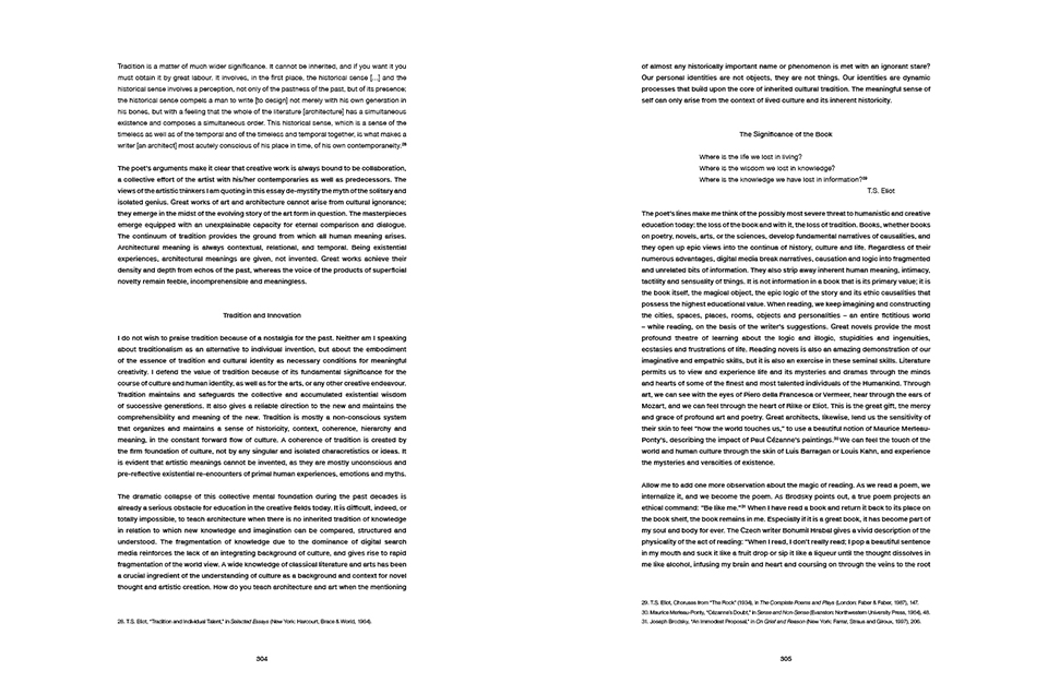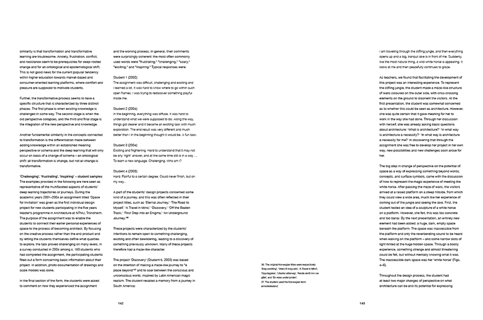 Additionally, there are 5 articles/interviews with international architects, such as Juhani Pallasmaa, William J.R. Curtis, Harriet Harriss, Harald Røstvik and Veronika Valk-Siske, who give their view on teaching architecture.