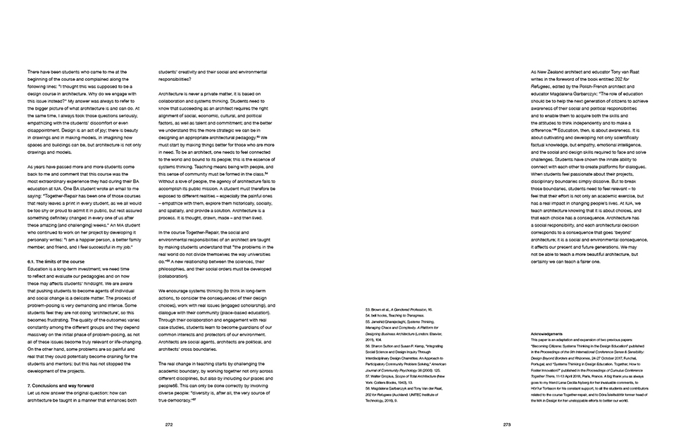 Systems Thinking and Systems Feeling in Architectural Education How we teach Architecture at the Iceland University of the Arts IUA: the Case Study of Design Course: Together-Repair