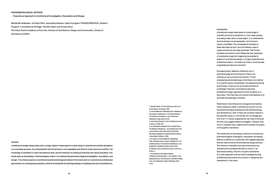 Phenomenological Method Towards an Approach to architectural Investigation, Description and Design