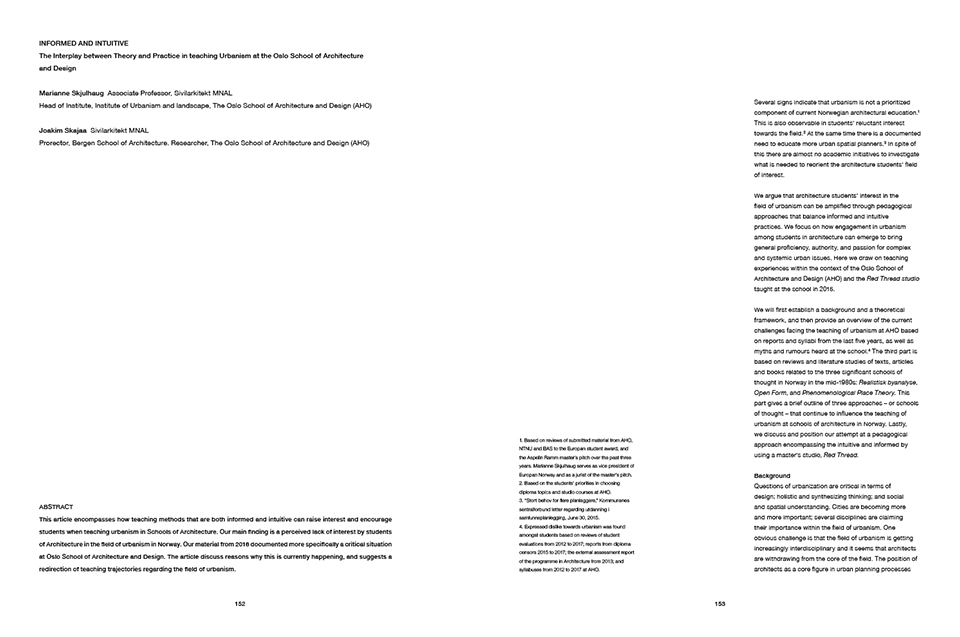 Informed and Intuitive The Interplay between Theory and Practice in teaching Urbanism at the Oslo School of Architecture and Design