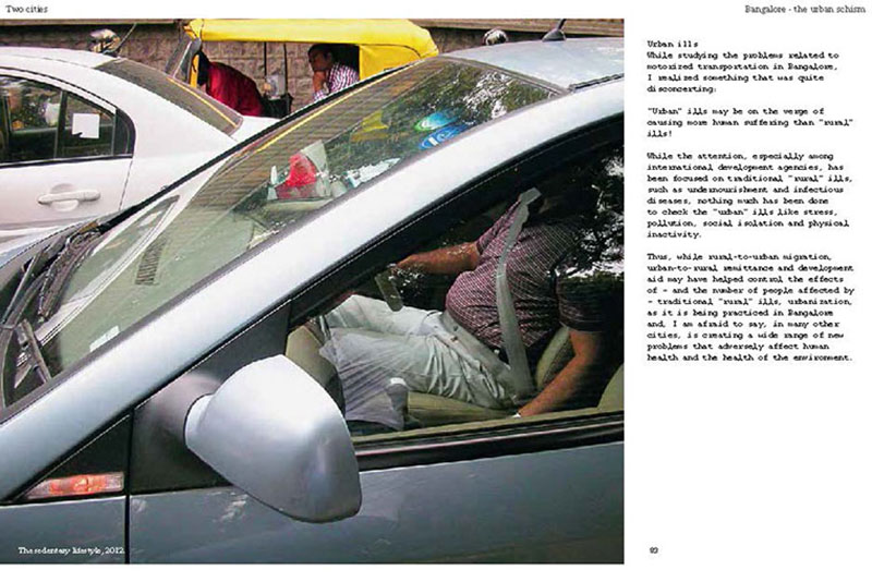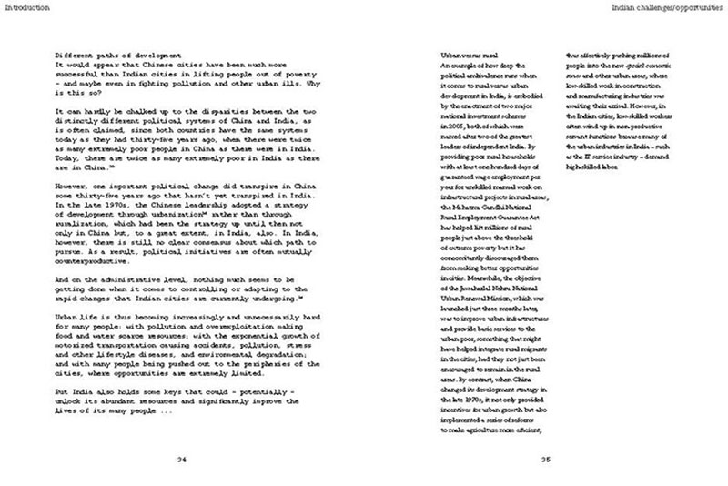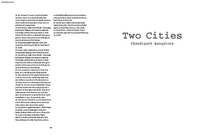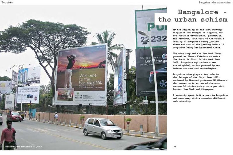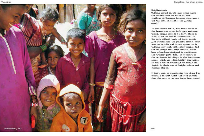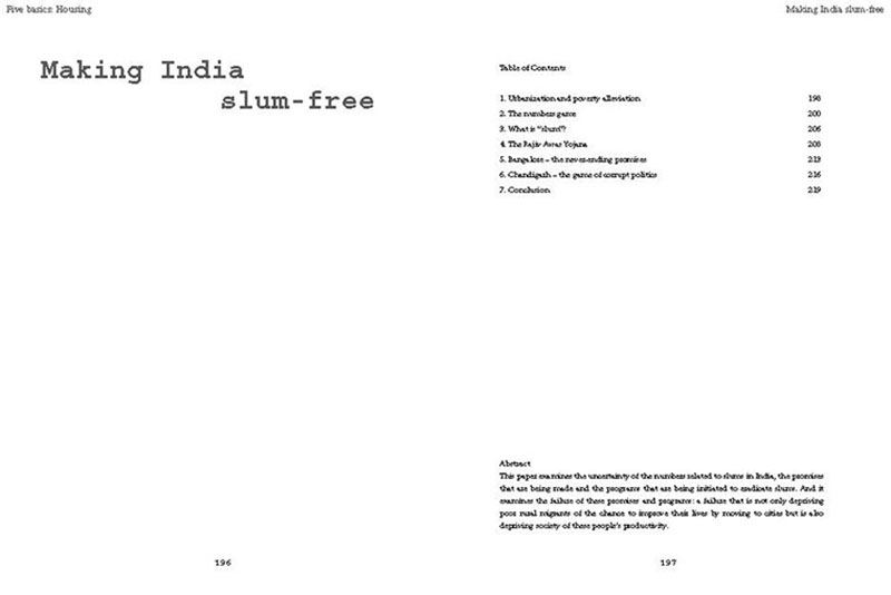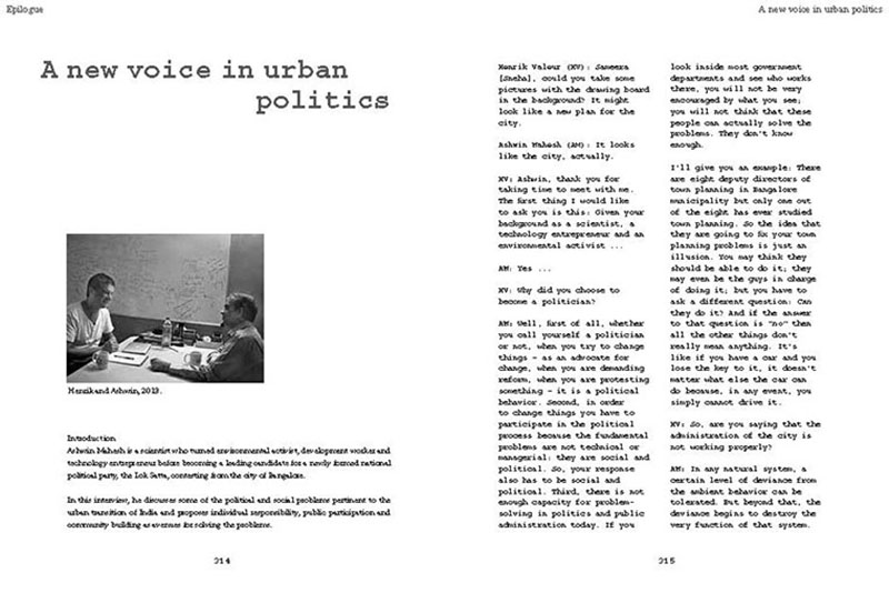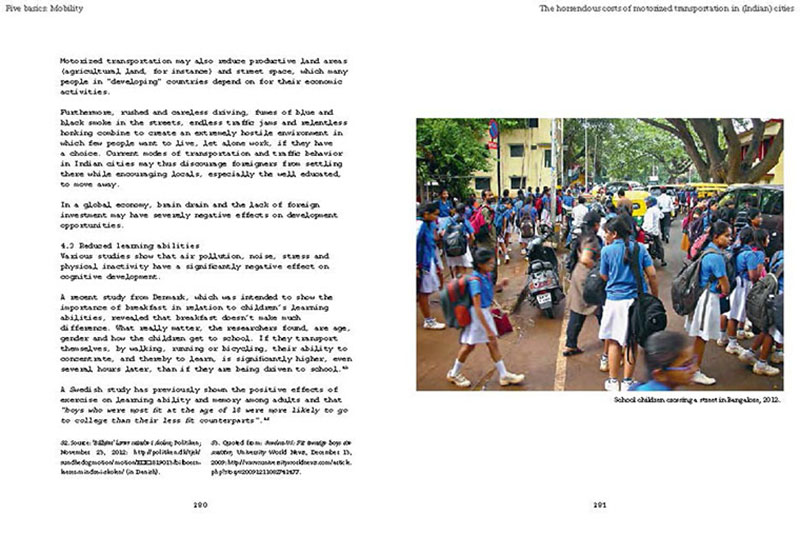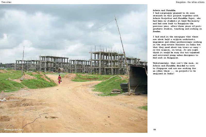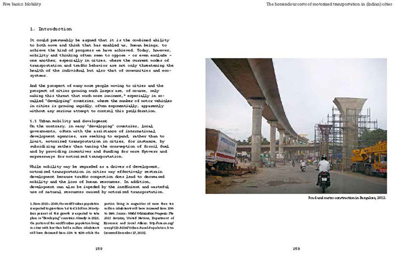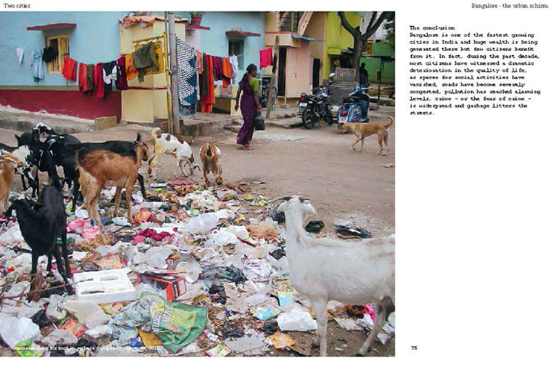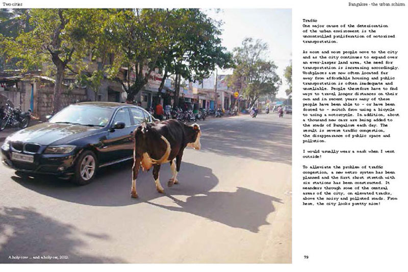 Based on his experiences teaching, researching and practicing in India, the author discusses some of the problems related to the urban transition of India, including the air pollution, the contamination and depletion of fresh water resources, the precarious food situation, the lack of proper housing, and various environmental and human health problems related to motorized transportation. He also proposes a number of possible solutions, including the use of plants and natural ventilation to create clean indoor air, the revitalization of an existing system of water canals, the creation of vertical kitchen gardens in a rehabilitation colony, a strategy for making an entire neighborhood car-free and a design for self-designed, low-cost housing.
