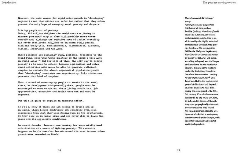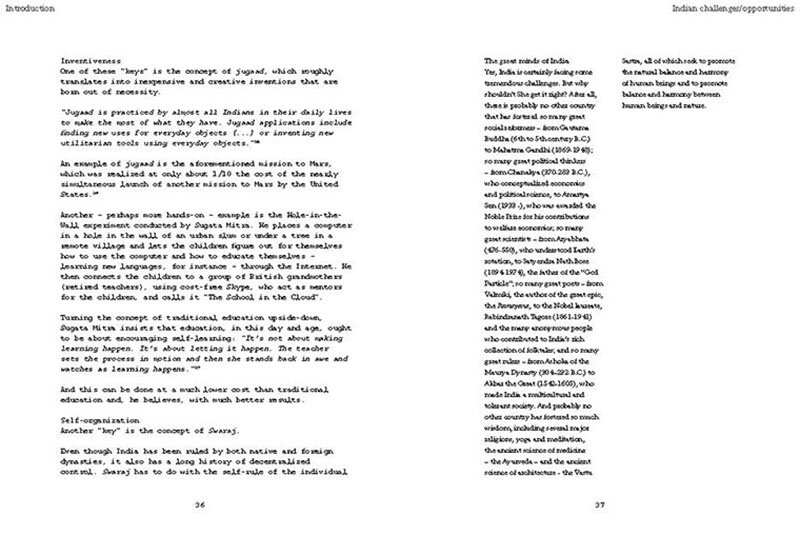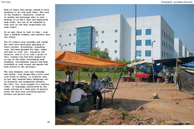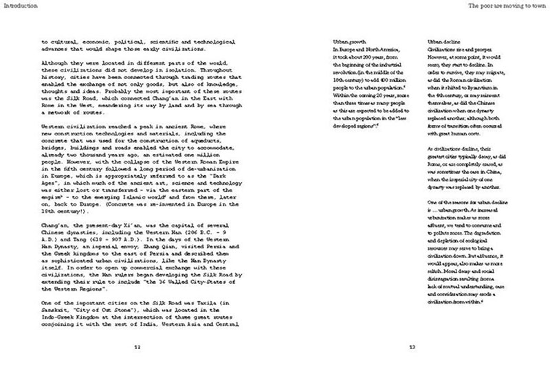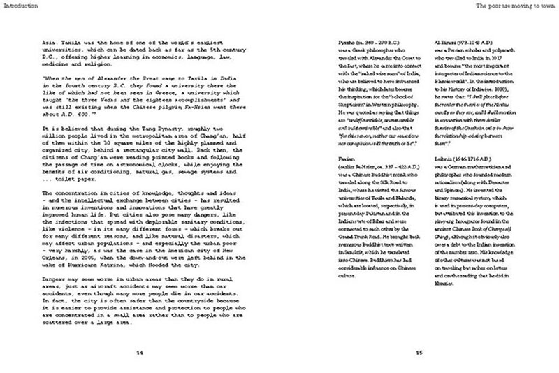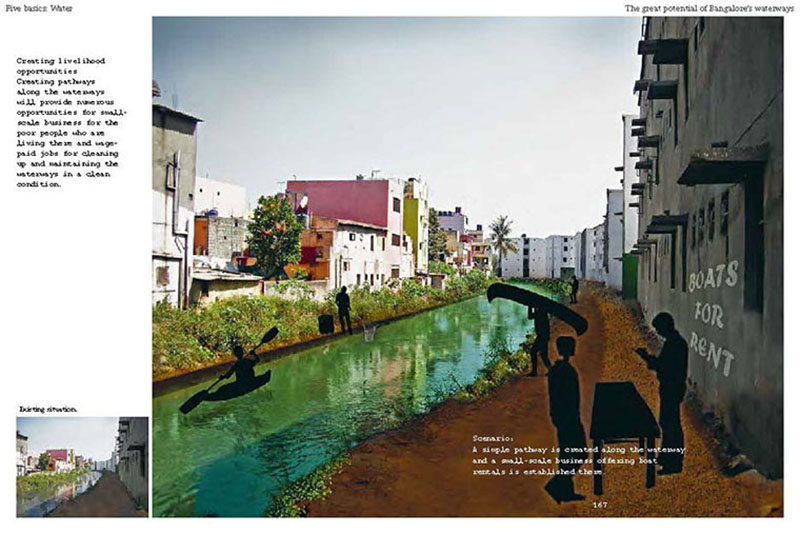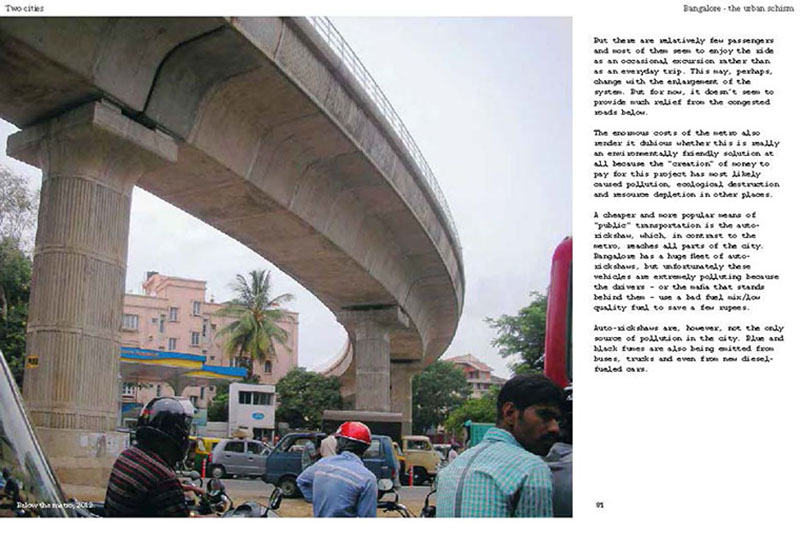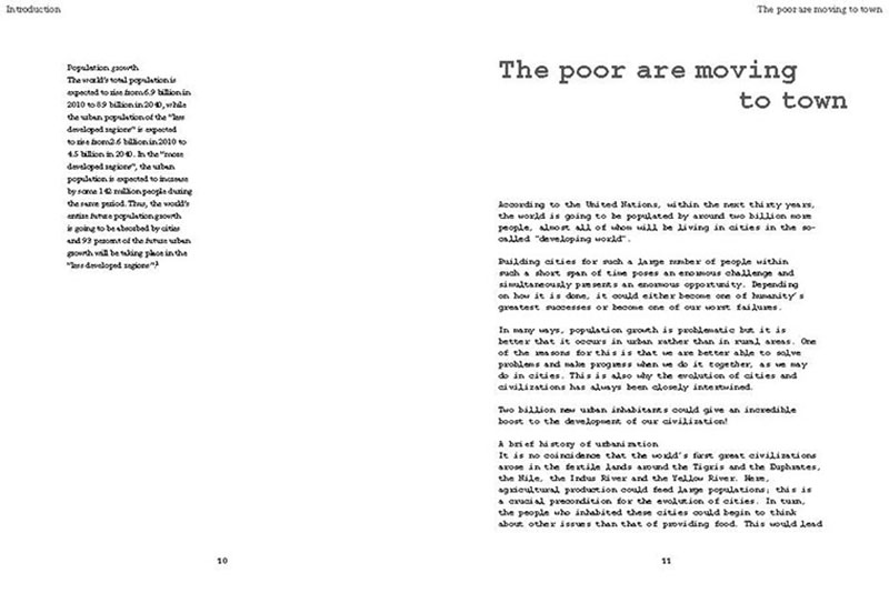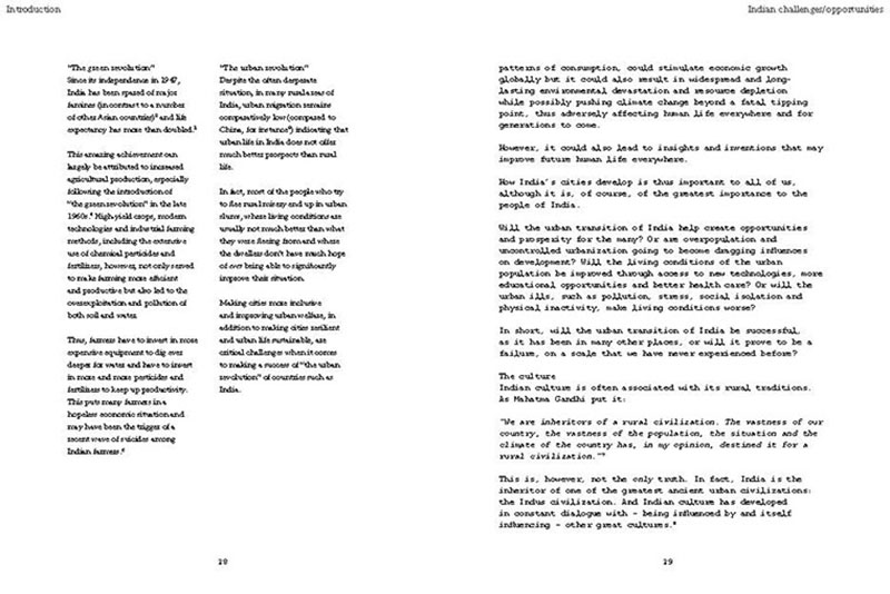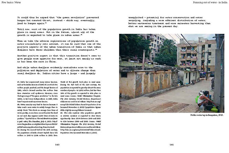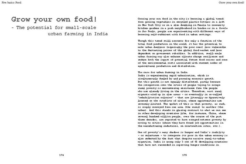 Based on his experiences teaching, researching and practicing in India, the author discusses some of the problems related to the urban transition of India, including the air pollution, the contamination and depletion of fresh water resources, the precarious food situation, the lack of proper housing, and various environmental and human health problems related to motorized transportation. He also proposes a number of possible solutions, including the use of plants and natural ventilation to create clean indoor air, the revitalization of an existing system of water canals, the creation of vertical kitchen gardens in a rehabilitation colony, a strategy for making an entire neighborhood car-free and a design for self-designed, low-cost housing.