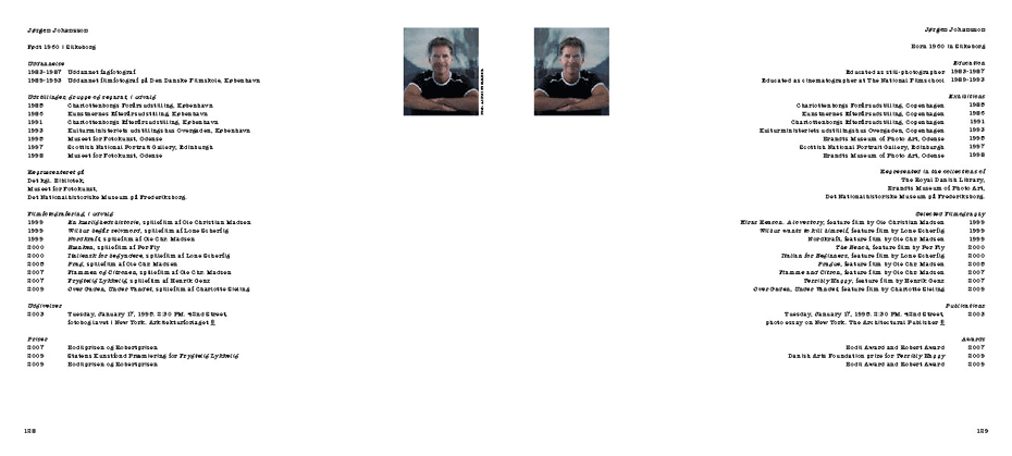 Jørgen Johansson (1960) started as a still photographer, exhibiting his pictures since 1985, but since 1998 he has become one of the most famous cinematographers of Danish movies. In his books he combines both sides of his skills.