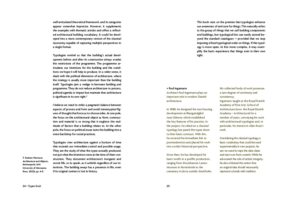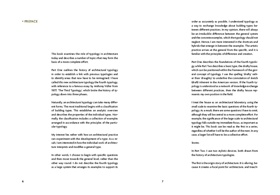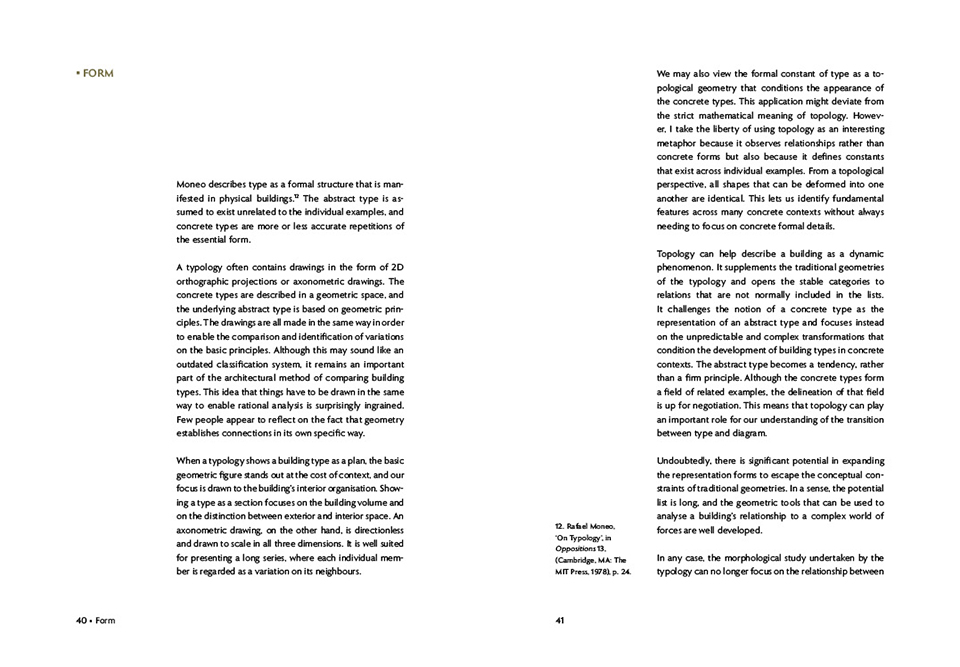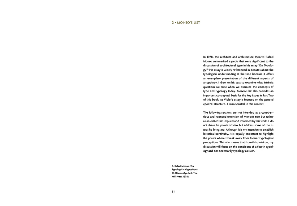 This book demonstrates how architectural typology can bring together the best examples. It creates a framework where experiences from past building traditions can meet new ideas. This is crucial whether one is transforming the existing building stock or constructing new buildings. We can use typology to consider how architecture remains meaningful when our current world is replaced by a new one.