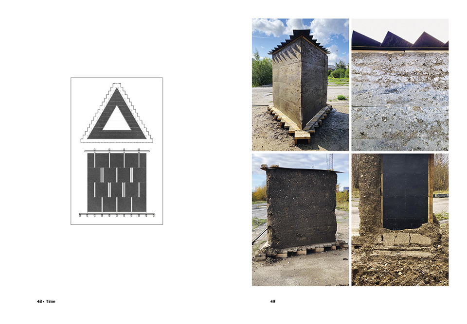 The book is illustrated with material experiments, contemporary exhibition projects, and historical architectural works.