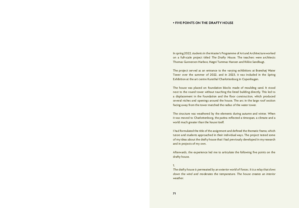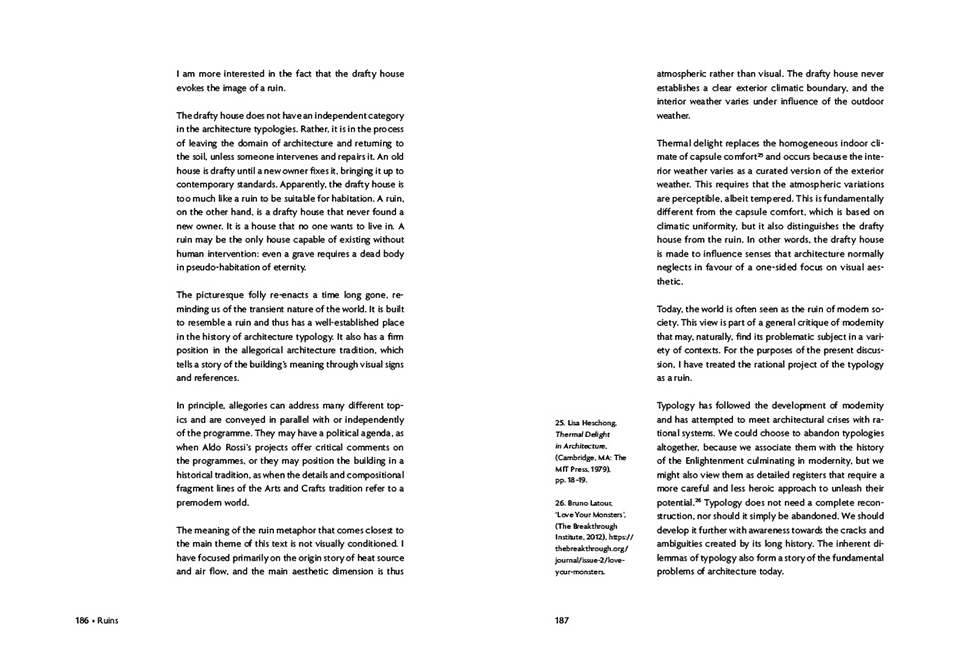 The historical works come from cultures that understand a building's climate as a dynamic and open concept.