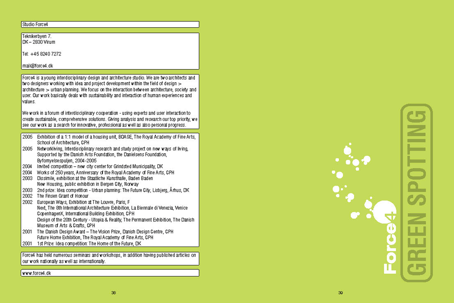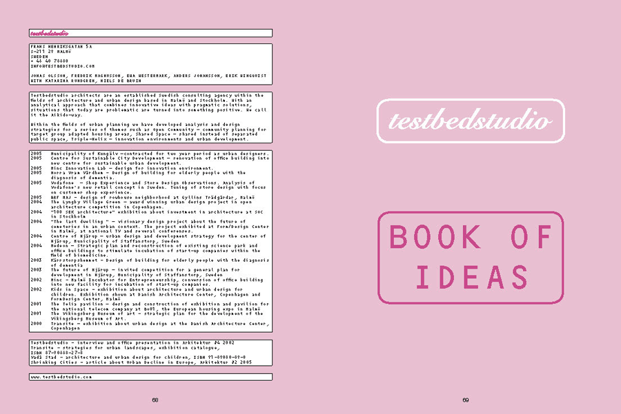 8 young architectural offices from the Öresund region (Copenhagen-Malmö) at the 6th European Biennal of Yowns and Town Planners 2005: