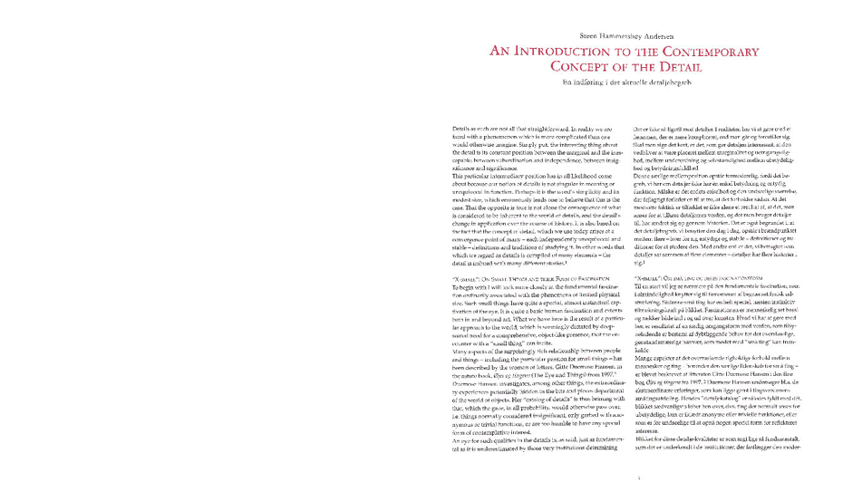 Steen Hammershøy Andersen: An introduction to the contemporary concept of the Detail / En indføring i det aktuelle detaljebegreb