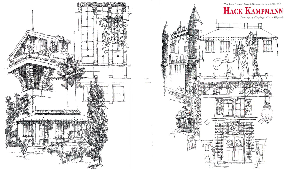 Hack Kampmann: The State LIbrary of Aarhus / Statsbiblioteket Aarhus, 1898-1902, drawn by Ivan Kilpatrick