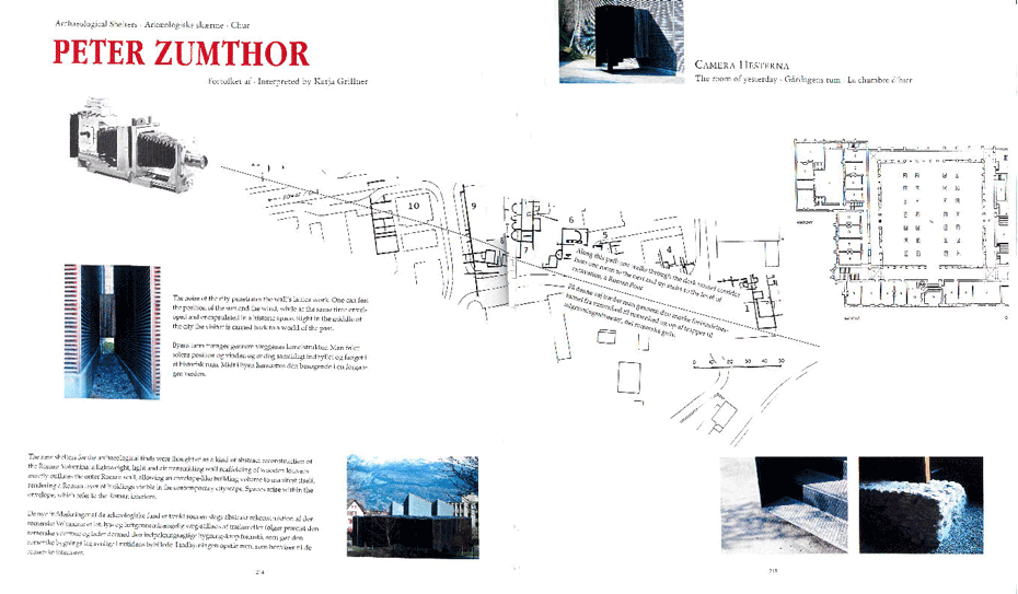 Peter Zumthor: Archaeological shelters/ Arkæologiske skærme, Chur, interpretet by/ fortolket af: Katja Grillner