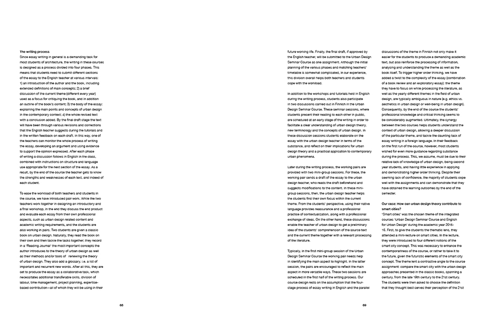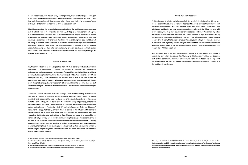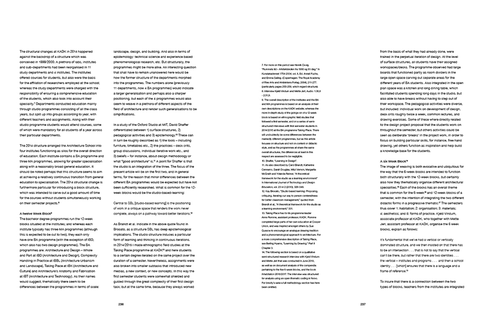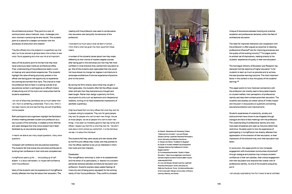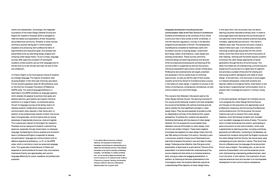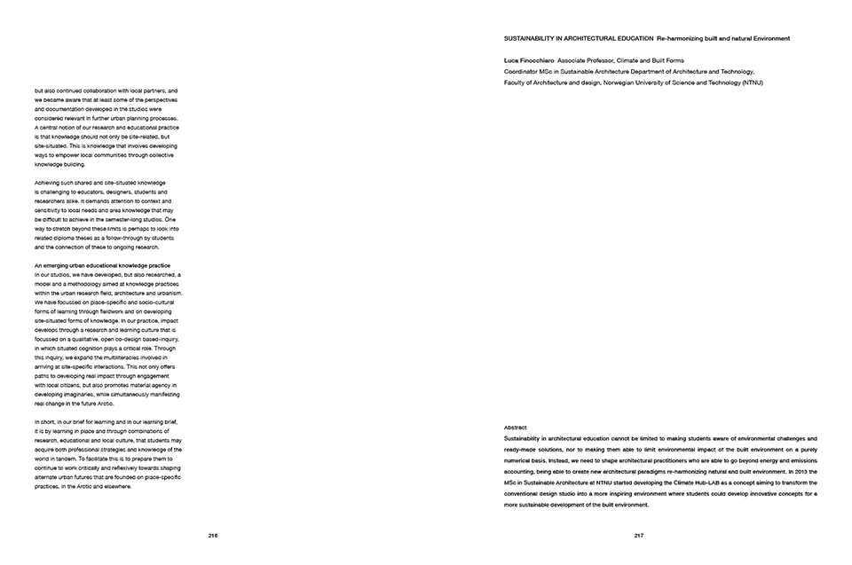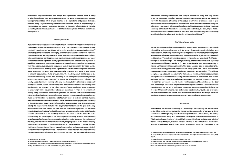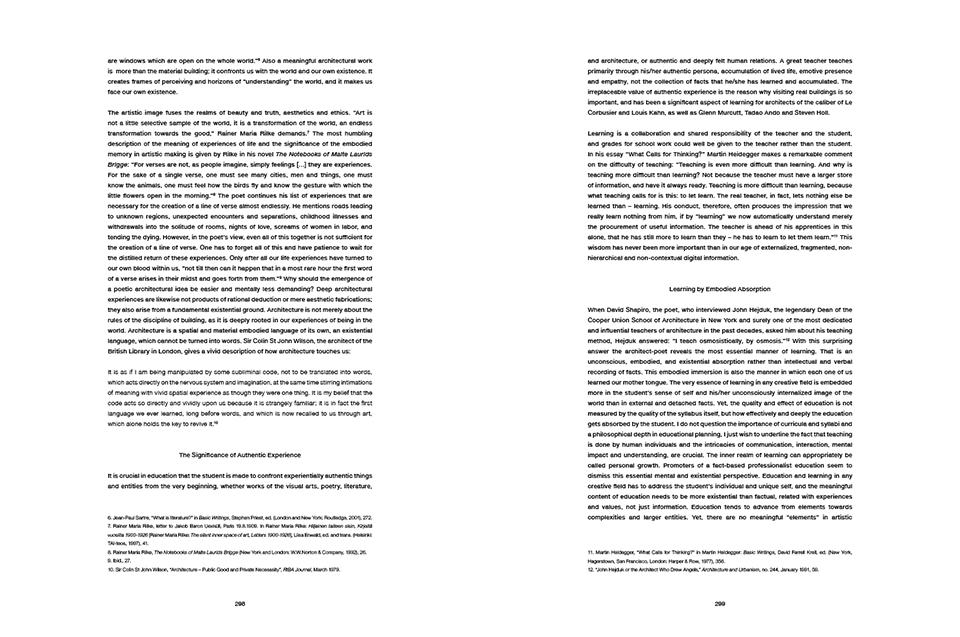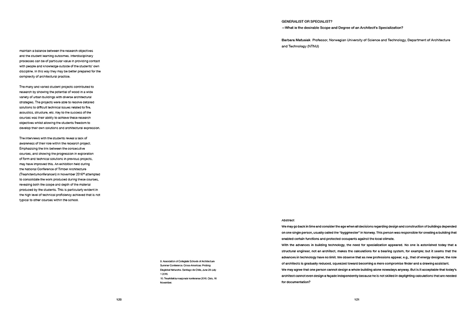 Additionally, there are 5 articles/interviews with international architects, such as Juhani Pallasmaa, William J.R. Curtis, Harriet Harriss, Harald Røstvik and Veronika Valk-Siske, who give their view on teaching architecture.