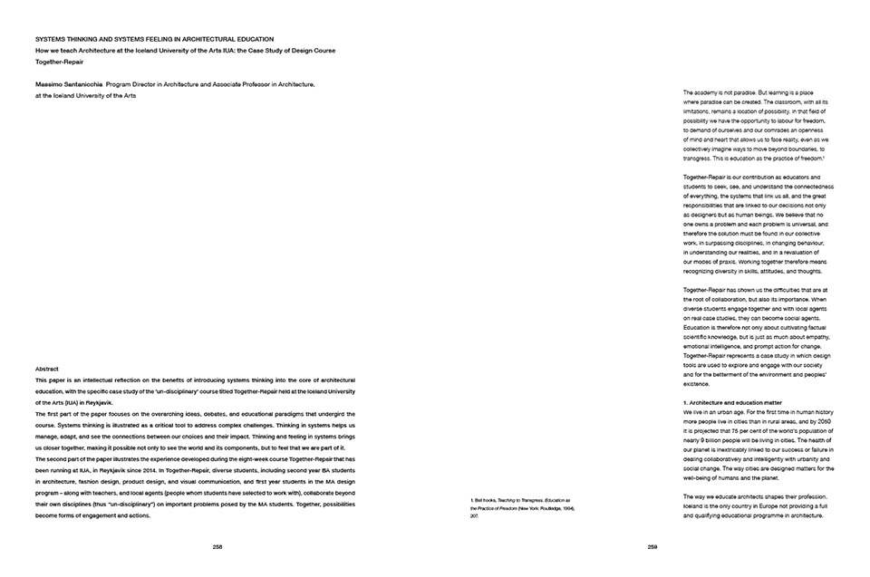 Systems Thinking and Systems Feeling in Architectural Education How we teach Architecture at the Iceland University of the Arts IUA: the Case Study of Design Course: Together-Repair