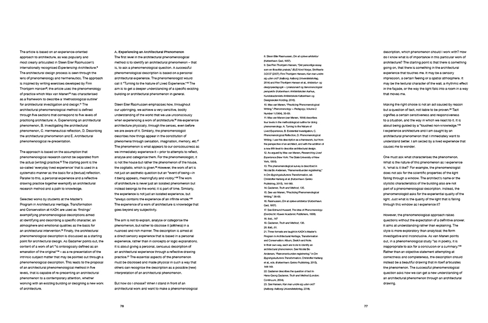 Phenomenological Method Towards an Approach to architectural Investigation, Description and Design