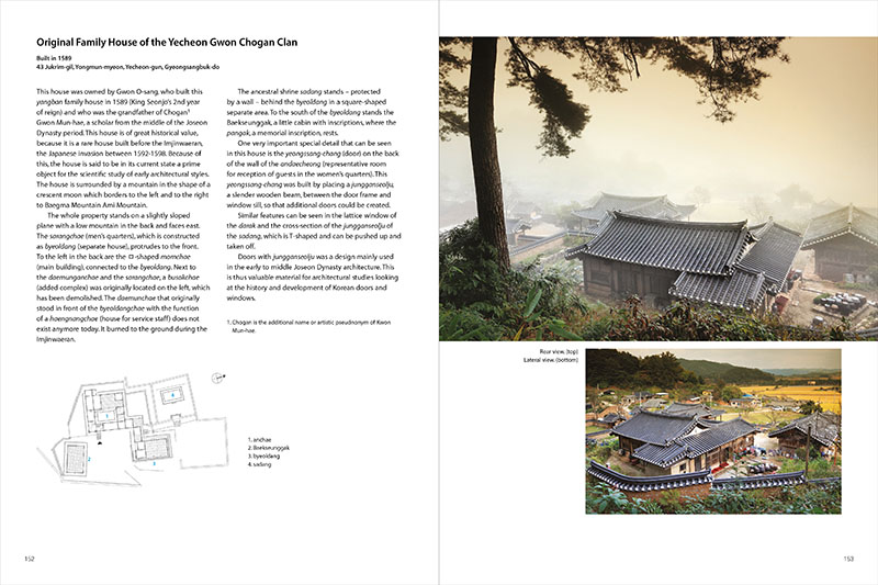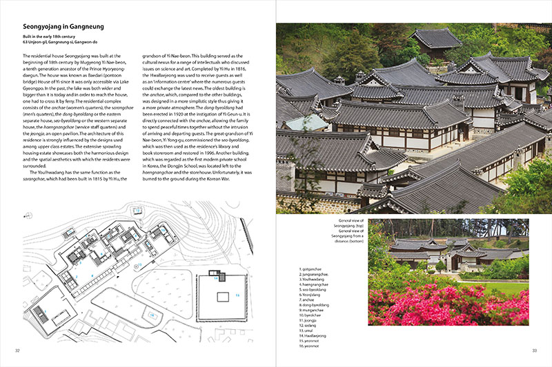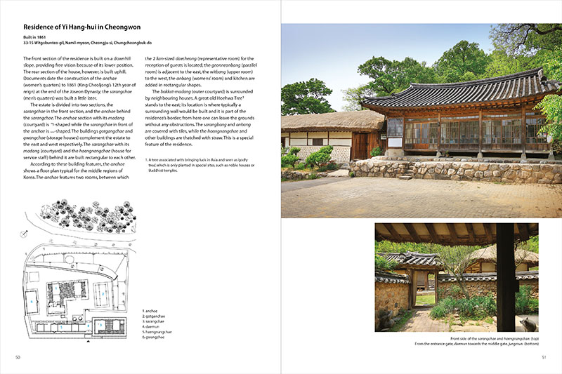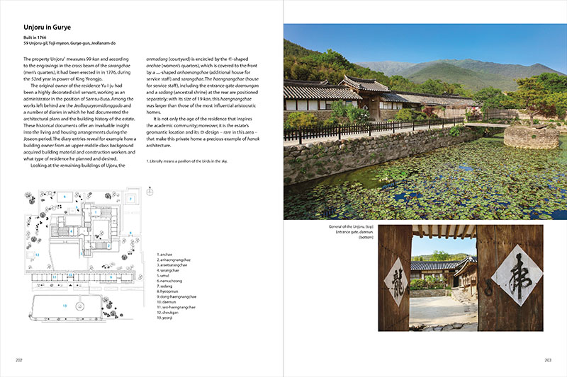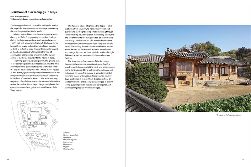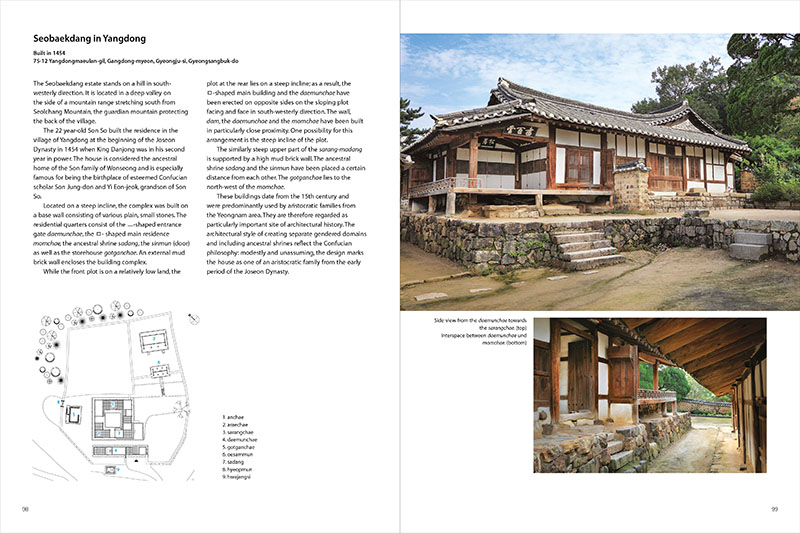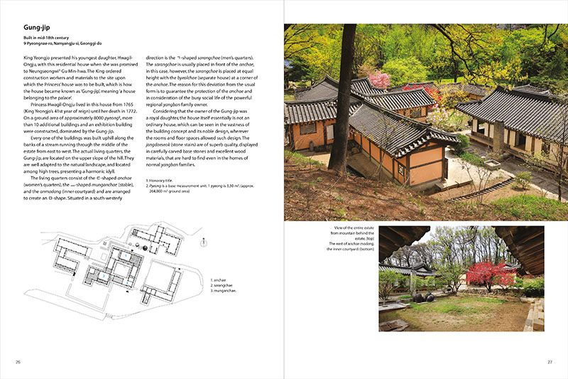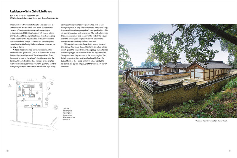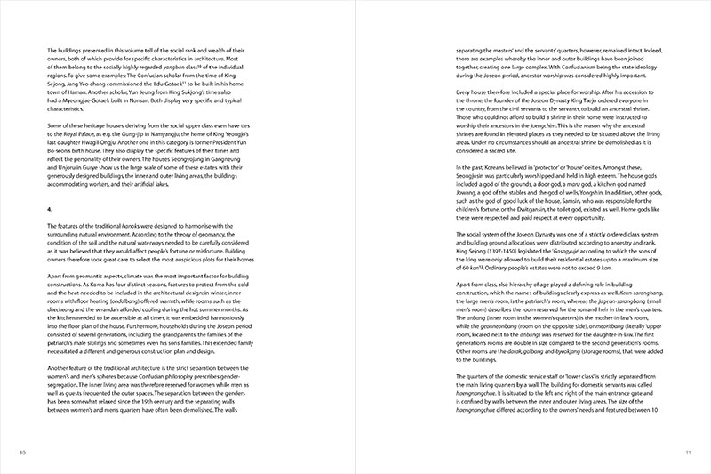 The book gives an overview of the traditional Korean residential house, the Hanok, meaning a ”traditional house”. The Korean hanok style is uniquely different from a Japanese or Western building style, since it was built according to the needs of the country’s very distinct four seasons, with an open veranda for the very warm, humid summers and an under floor heating-system for the harsh, cold winters. With the oldest hanok dating back to 1450 and the most recent built in 1947, the book presents a range of traditional Korean houses over a period of 700 years.