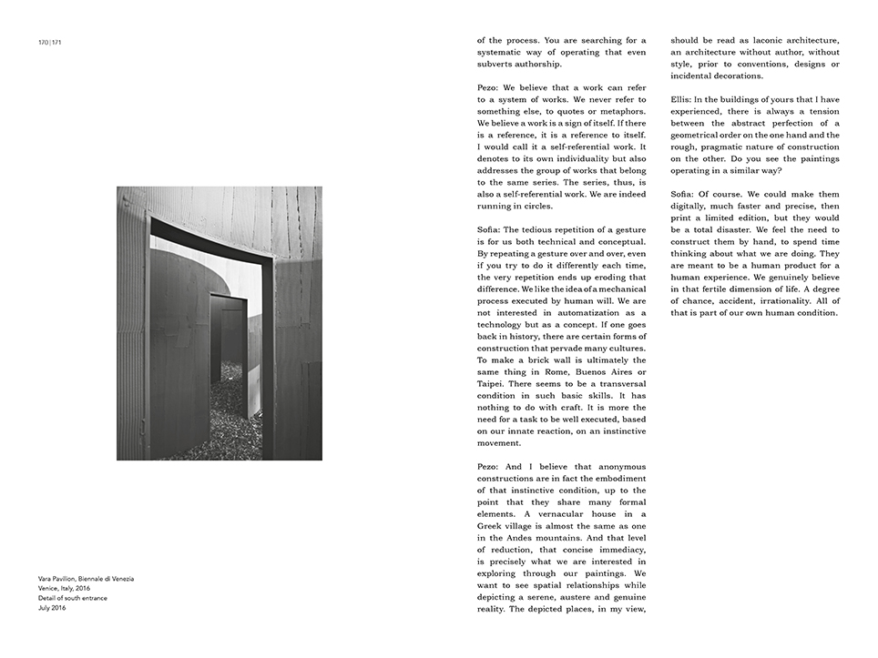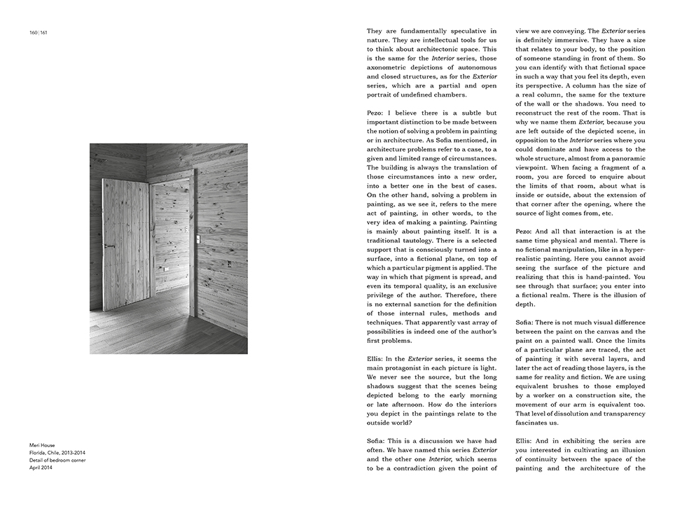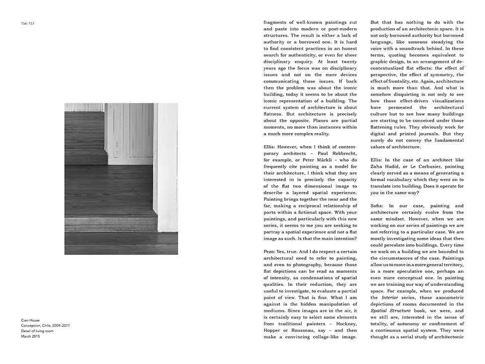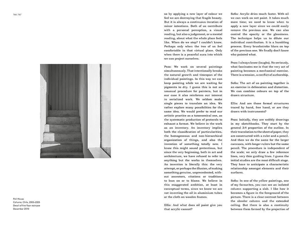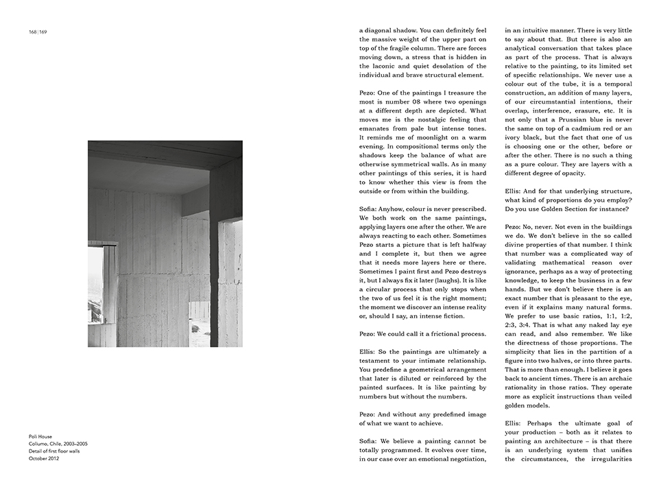 The book includes an interview with Pezo von Ellrichshausen on the relation between their architecture and painting by the architect critic Ellis Woodman.