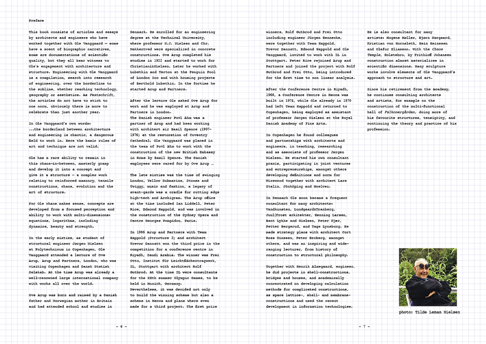 "Engineering with Ole Vanggaard" is a tribute to the works of the Danish engineer Ole Vanggaard, who has been working as an engineer, teacher, consultant, theorist and artist, showing some of his projects and 17 smaller articles by former colleagues and collaborators, telling about projects they have been doing with Ole and displaying the wide range of his career, both at the Royal Academy in Copenhagen and his many consultant jobs for architectural offices and artists. His work also shows how engineers and architects can and should work together.