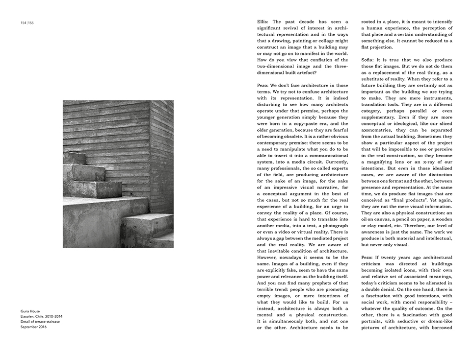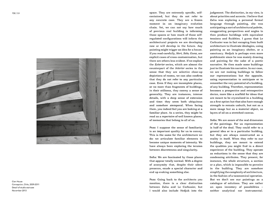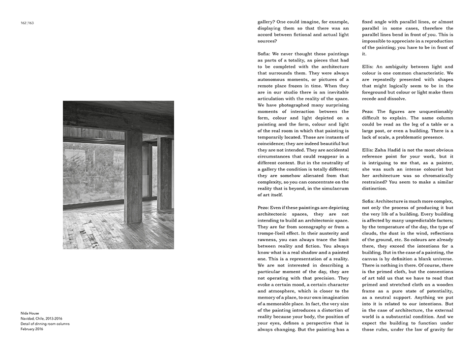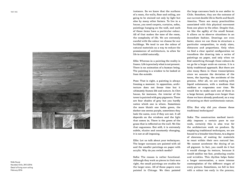 The book includes an interview with Pezo von Ellrichshausen on the relation between their architecture and painting by the architect critic Ellis Woodman.