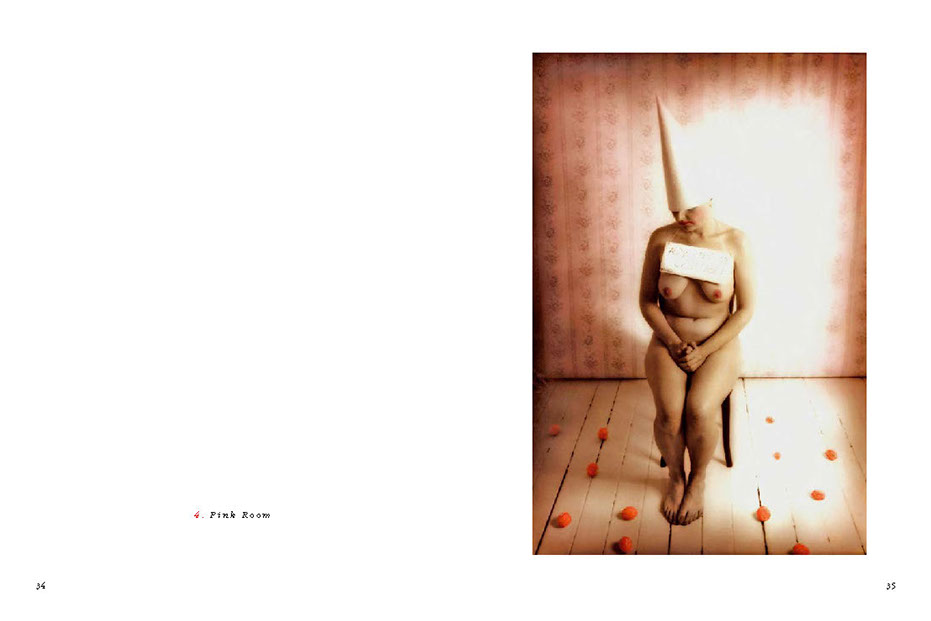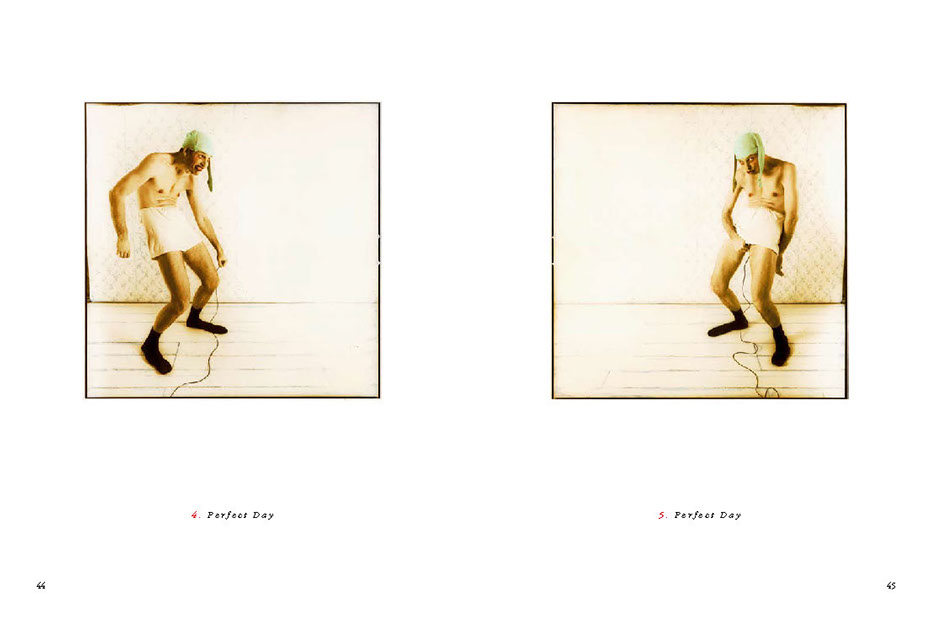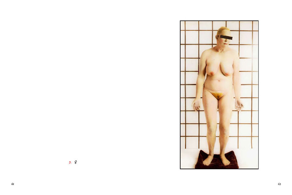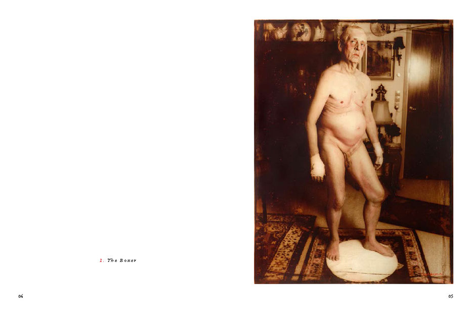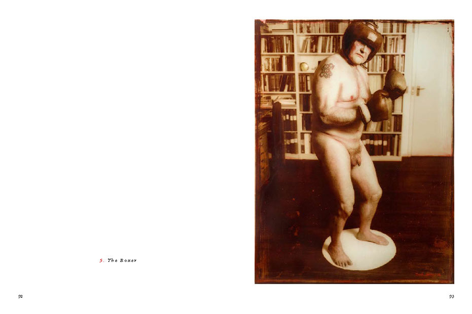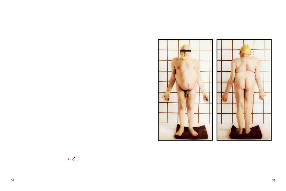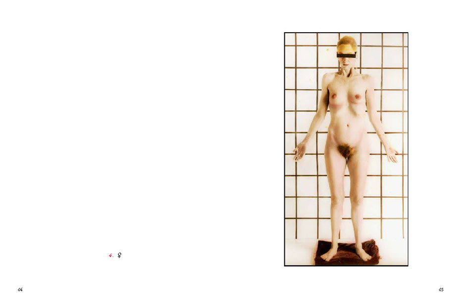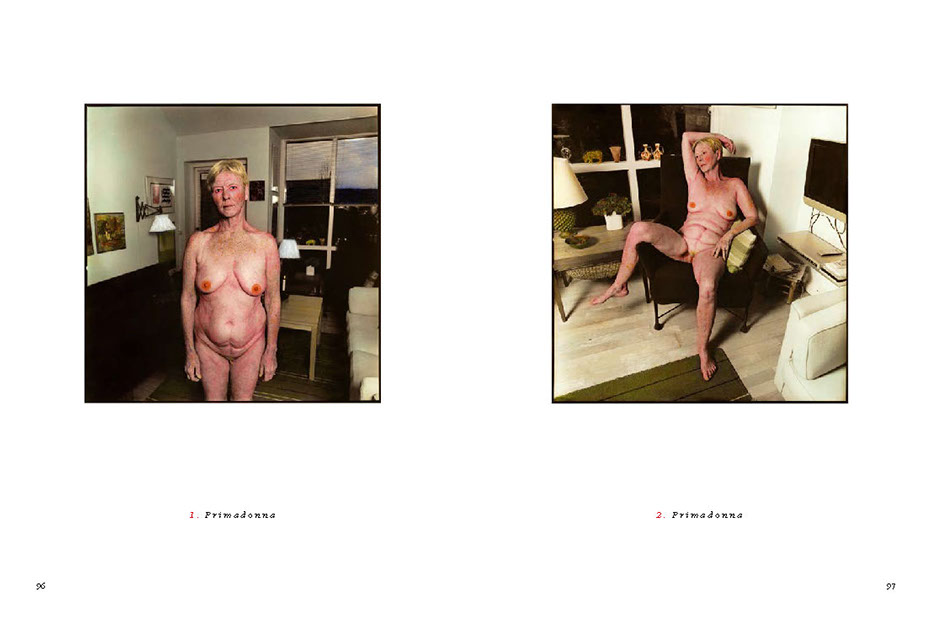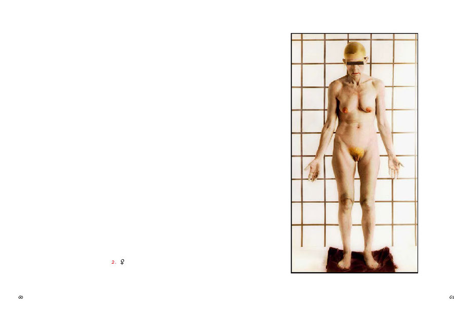 His models are involved in actions within the framework of the image, sometimes blindfolded or with a hat pulled down over their eyes – or with shut eyes. Blindness, the absence of the responding gaze, prompts the beholder to think about the image’s abstract meaning and points to the actual essence and function of the picture itself. In other images, a direct gaze looks back out onto the viewer. (...)